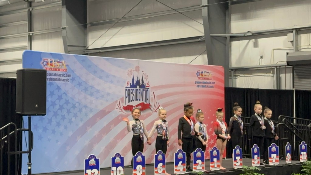 Surprised the kids at Disney World to watch Violets gymnastics competition! So much fun π